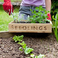 Gardener With Seedling Tray ← Previous Next → Gardener holding wooden seedling tray in vegetable garden.